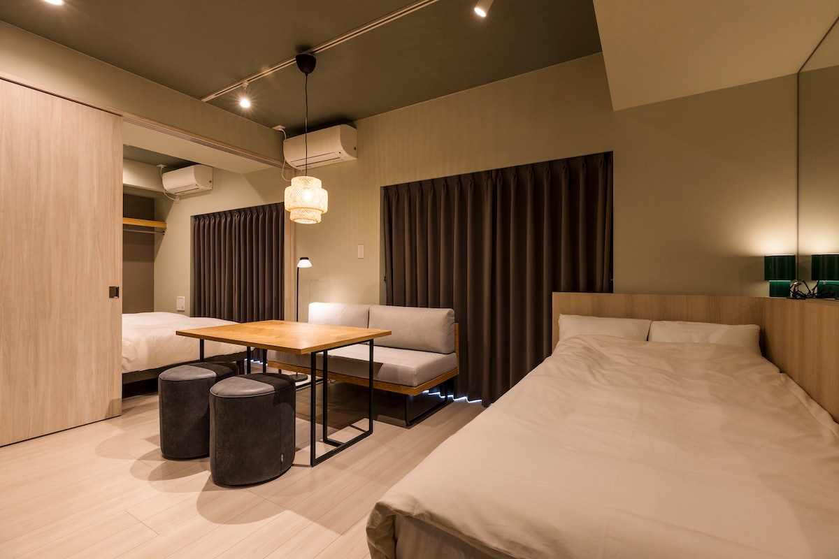 A stylish, modern condo-style hotel opened in May 2025, located in the heart of Akihabara. Just a few minutes’ walk from both Suehirocho and Akihabara stations, with convenience stores and restaurants nearby. Surrounded by figure shops, electronics stores, maid cafés, and real-life Mario Kart rides—plus custom car gatherings on weekends. Still, the street is quiet at night for a restful sleep. 25㎡ studio Single-size bunk bed Smart TV Fully equipped kitchen In-room washer-dryer