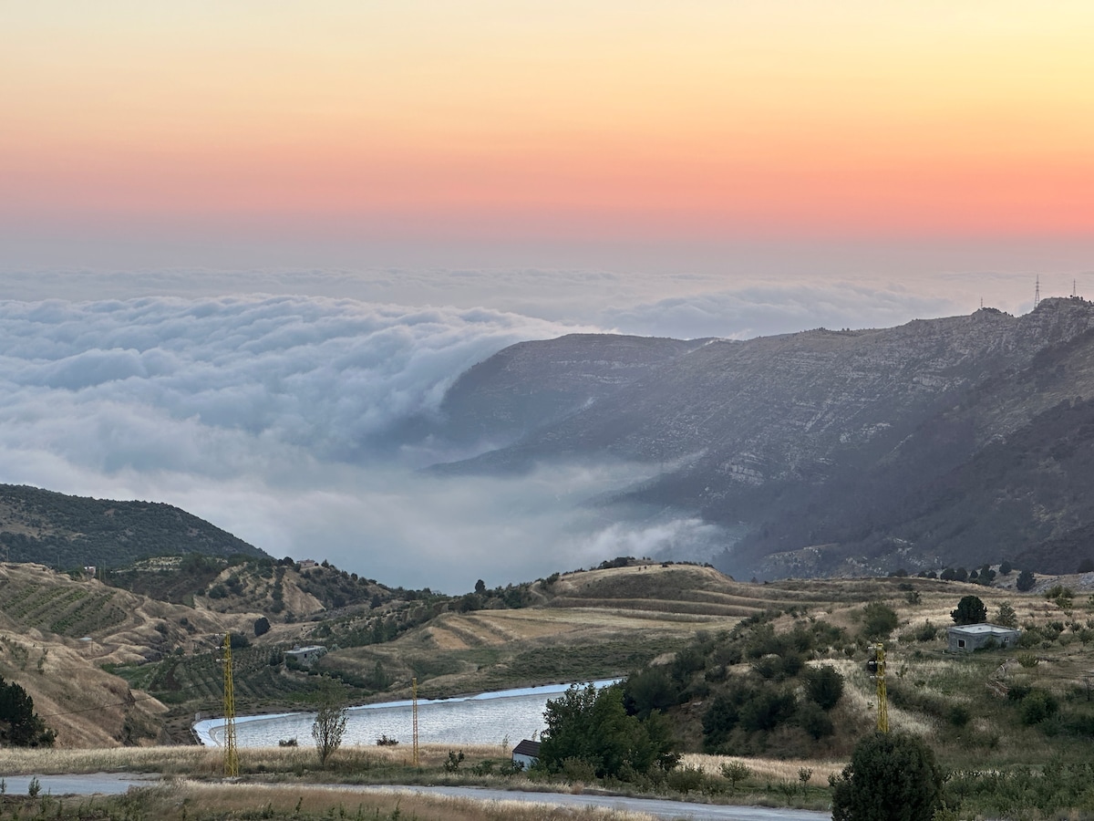 This stylish place is perfect for group trips. Located 1,500 meters above sea level, it is within walking distance of one of the most beautiful virgin cedar conservation areas in Lebanon. The space is large, with plenty of indoor and outdoor areas, and completely isolated for the ideal group retreat and full disconnection. It is eco-friendly and equipped with a heating system, chimney, fire pit, and BBQ for a cosy stay.