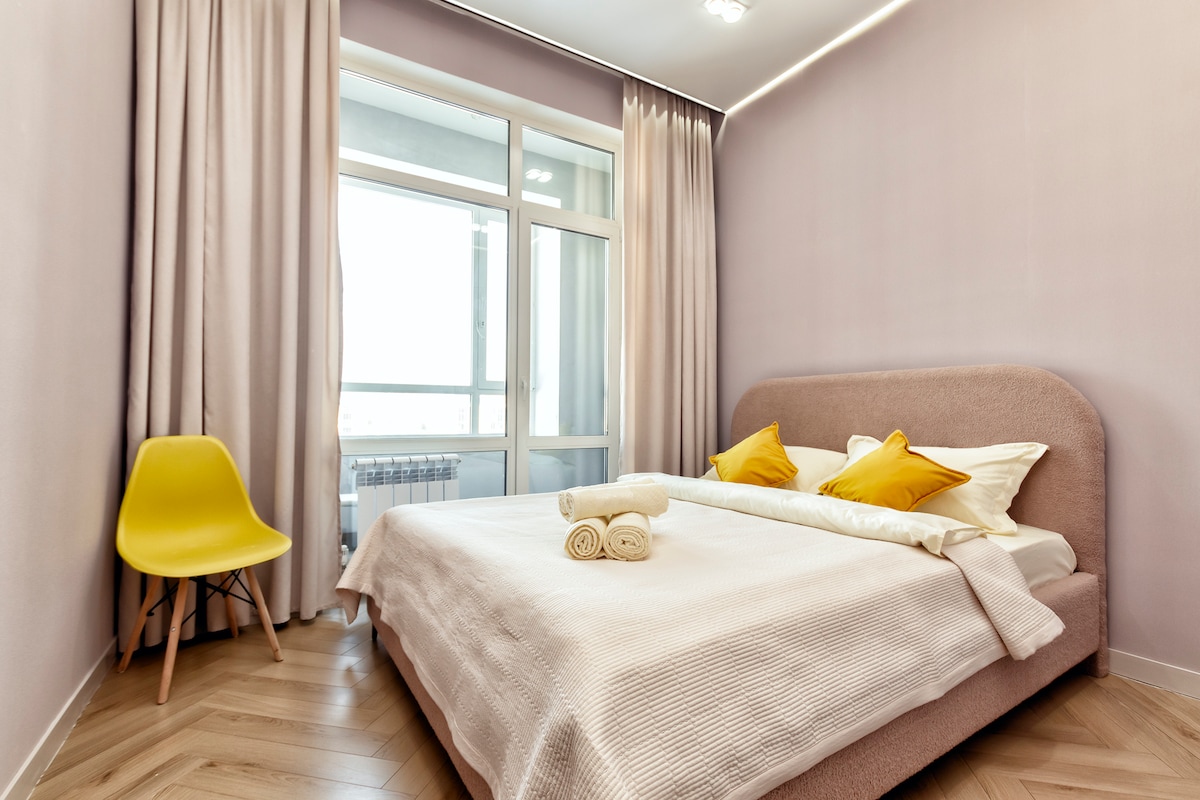 Discover comfort in the heart of Astana! Welcome to your home away from home — a stylish, 1-BR apartment just minutes away from the city's main attractions. What you’ll love: • Comfortable bed with fresh linens • High-speed Wi-Fi and Smart TV • Fully equipped kitchen + dining area • Quiet surroundings — botanic garden and parks • Walking distance to shops and public transport • Easy access to Astana Arena Stadium, Barys Arena and other sport facilities. Book your stay and enjoy!