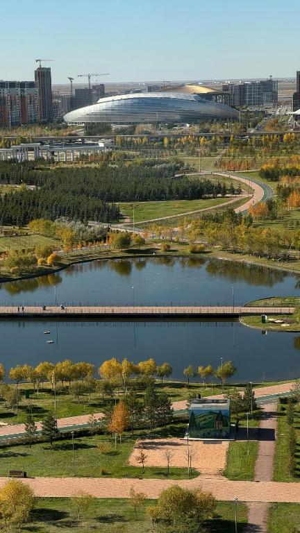 Остановитесь в стильном жилье с высоким уровнем безопасности (камеры видеонаблюдения, охрана, ресепшн) недалеко от самых интересных достопримечательностей, делового центра столицы, с возможностью прогуляться в Ботаническом саду в шаговой доступности. На территории апарт- отеля имеется кофейня, кофе аппарат, SPA, фитнес клуб, салон красоты, продуктовый магазин, кондитерская, рестораны, в том числе ресторан казахской кухни, бар, клуб, кальянная. Бесплатная парковка, зарядка для электромобилей.