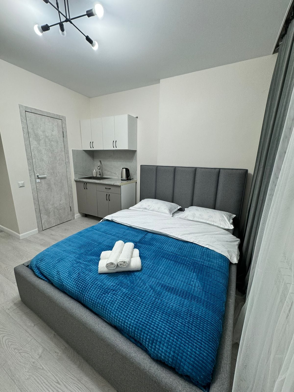 Привет, дорогой будущий гость :) Планируете поездку в Казахстан? Приглашаем остановиться у нас. Мы пара из Астаны, Светлана и Виктор. Сдаем однокомнатную квартиру со спальней, отдельной кухней и гардеробом. Только сделали ремонт специально для гостей. Дом находится в спальном районе — в центре правого берега. В 15 минутах ходьбы набережная. В 15 минутах езды торговый центр с кинотеатром.