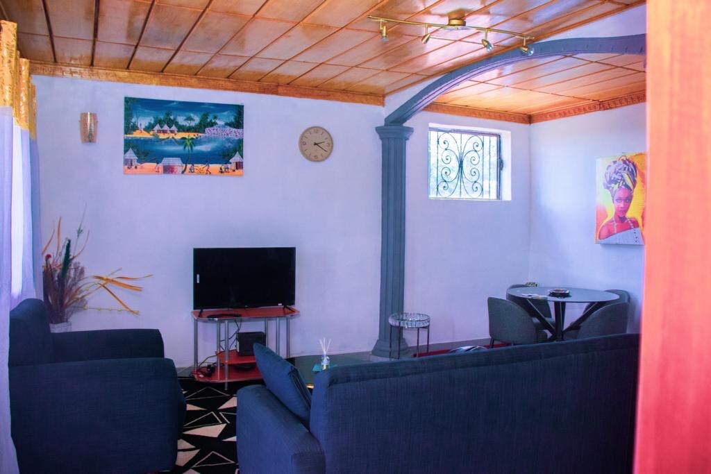 Profitez d’un séjour paisible dans ce charmant appartement de 2 chambres situé dans un quartier calme de Yaoundé. Ce logement vous offre tout le confort nécessaire pour un séjour agréable. 2 chambres confortables Cuisine équipée avec micro-ondes, réfrigérateur Lave-linge à disposition pour vos séjours prolongés Stationnement facile Ménage soigné entre chaque séjour ce logement est un véritable havre de paix tout en restant bien connecté au reste de la ville.