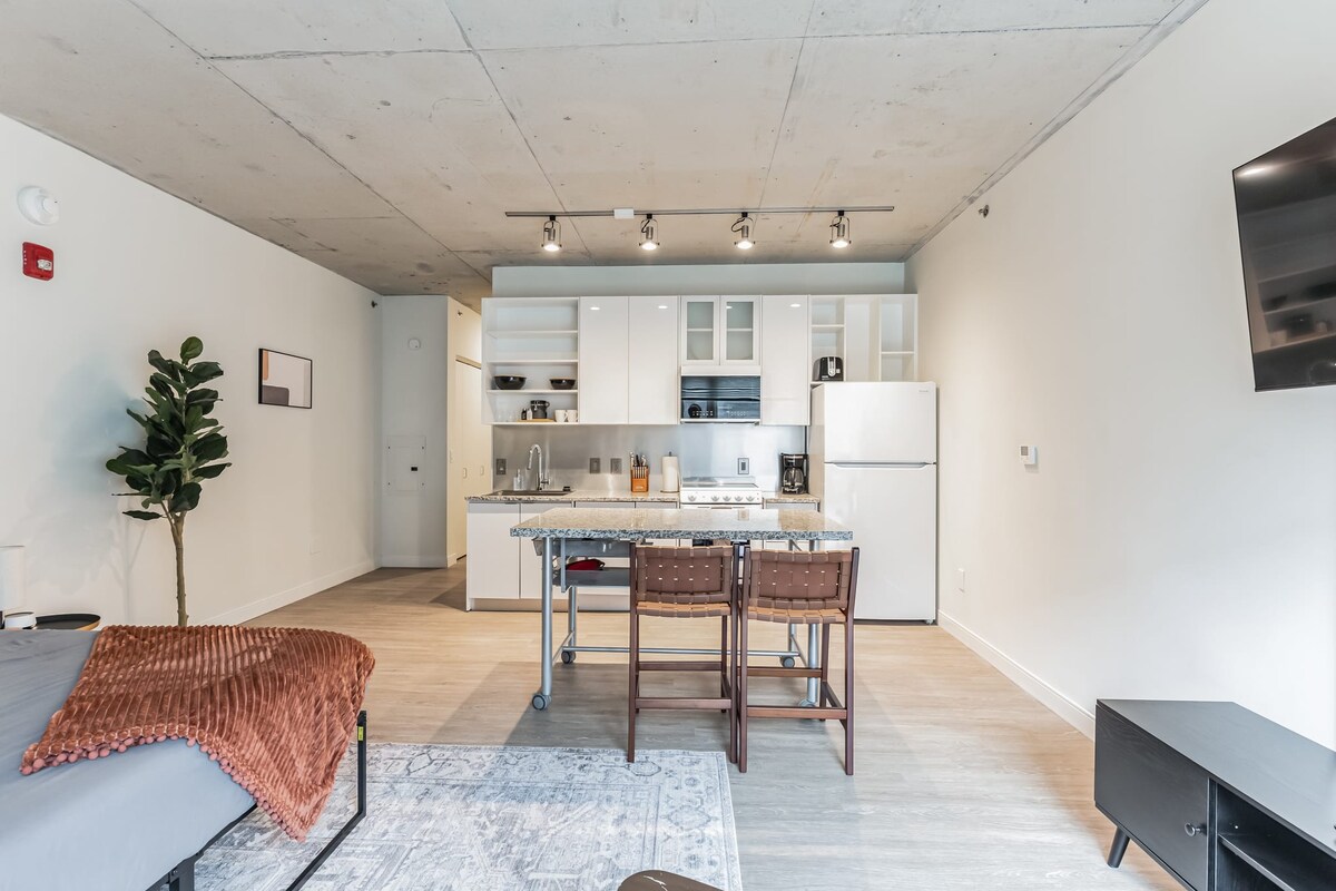 🏙️ Modern city loft in Cleveland’s Warehouse District 🧱 Exposed brick + skyline views 💻 Dedicated office workspace ☕ Keurig • Drip • Espresso maker 📺 Smart TV w/ Chromecast + YouTube TV 🍳 Fully stocked kitchen 🚶 Walk to stadiums, Rock Hall, Flats & more Enjoy true downtown living in this stylish third-floor apartment. With its mix of industrial charm and modern comfort, this space is perfect for professionals, couples, or travelers seeking an authentic Cleveland experience.