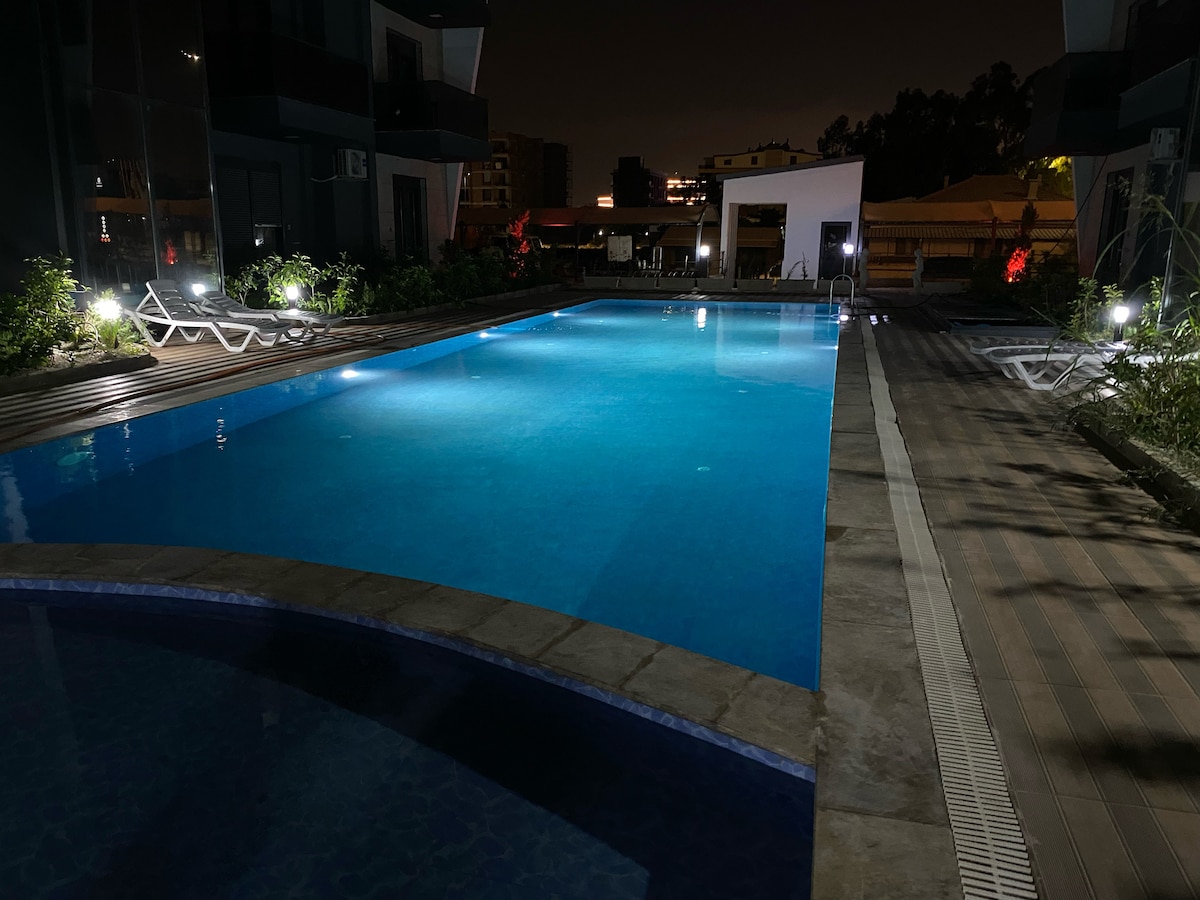 High quality residence complex with 24/7 security. It is walking distance to the beach modern, stylish, comfortable and peaceful. This residence has everything you need for a first class luxury vacation.Children's playground, pool, Turkish bath sauna. Supermarkets and restaurants are very close.All apartments have their own high-speed internet.