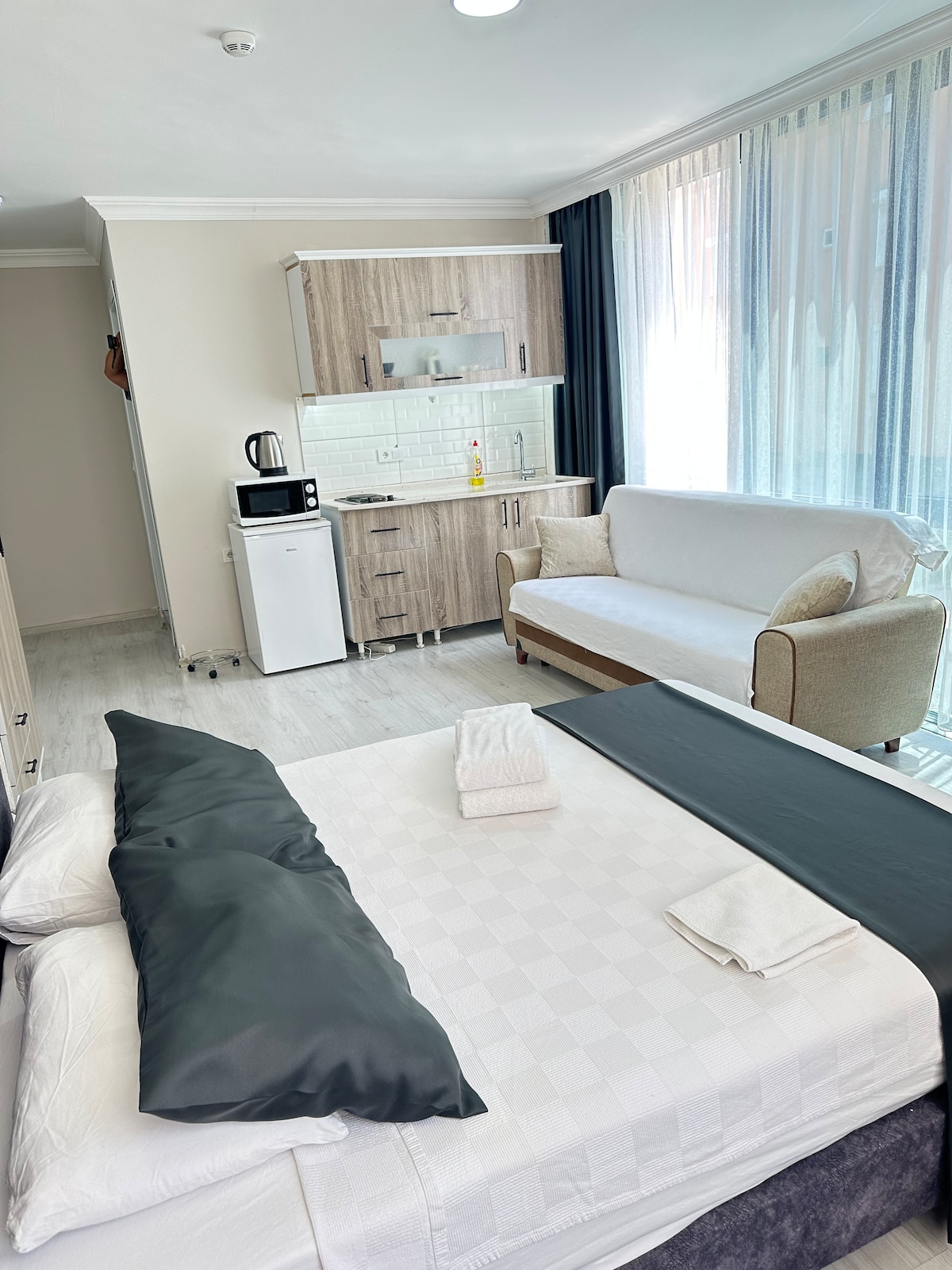 Antalya'nın kalbinde, şehrin tüm olanaklarına yakın, şık ve huzurlu bir dairede tatilinizi geçirmek ister misiniz? O halde doğru yerdesiniz! Dairemiz, şehrin en popüler turistik noktalarına yürüme mesafesinde, ancak çok sessiz bir konumda yer almaktadır. Merkez caddeye ve Kaleiçi'ne sadece birkaç dakika uzaklıktayız. Ayrıca, yakınlarda çok sayıda restoran, kafe, bar ve mağaza bulunmaktadır. Dairemiz, şık ve sade bir tarzda dekore edilmiştir.