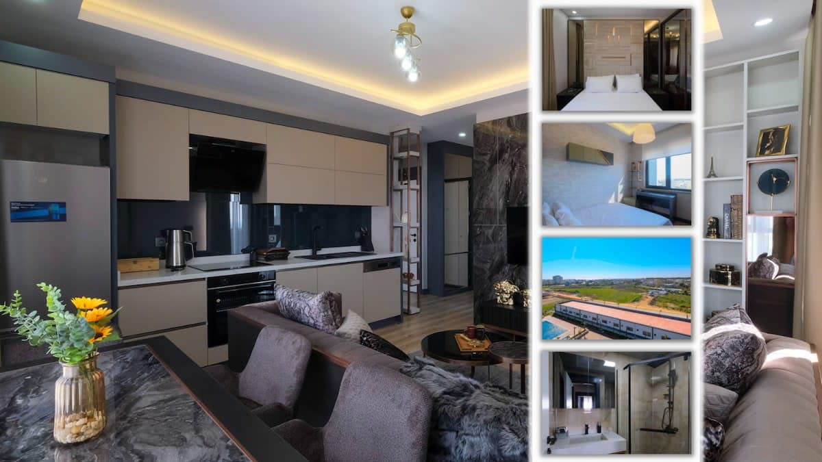 Antalya’daki şık 1+1 dairemizde konforlu bir konaklama sizi bekliyor! Dairemiz, hem kısa hem uzun süreli konaklamalar için idealdir. Geniş balkon (havalimanı manzaralı), yüzme havuzu, tam donanımlı mutfak (buzdolabı,bulaşık ve çamaşır makinesi), akıllı TV, Wi-Fi ve tüm odalarda klima mevcuttur. Alt katta Migros AVM, çevresinde fırın, kafe ve restoranlar yer alır. Havalimanına 3 dk Lara Plajı’na 10 dk, turistik bölgelere 20 dk uzaklıktadır. Dairelerimiz özenli ve profesyonelce temizlenmekte
