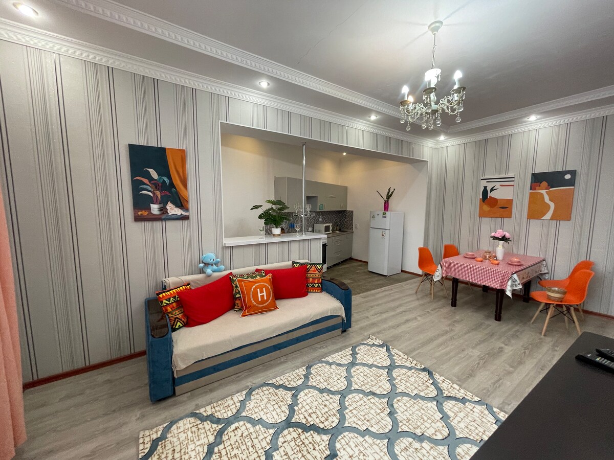 Уютная двухкомнатная квартира, расположенная в самом центре микрорайона Алтын Орда, станет идеальным выбором для комфортного проживания. В шаговой доступности находятся такие знаменитые объекты, как дворец Жекпе Жек, Ледовая арена и клиника Дару, что делает расположение квартиры очень удобным и привлекательным. Просторная гостиная оснащена удобным диваном и смарт ТВ, где вы сможете наслаждаться любимыми программами. В квартире есть бесплатный Wi-Fi для удобного подключения к интернету.