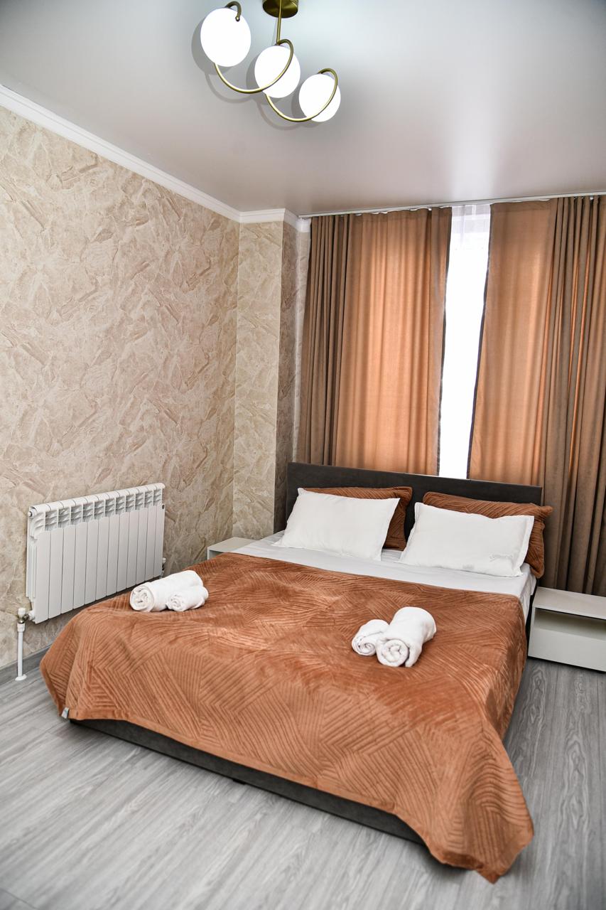 Насладитесь стильным отдыхом в центре города. Есть рядом гипермаркет Дина. В квартире имеется вай фай, СМАРТ ТВ, дорогой ортопедический матрас на двуспальной кровати.
