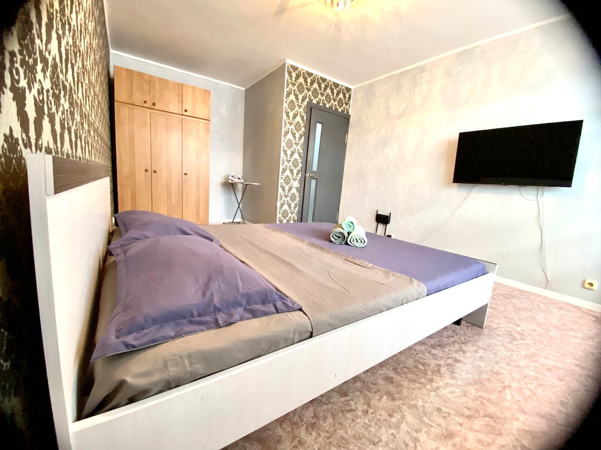 Приглашаем остановиться в нашей светлой квартире с домашним уютом и чистотой в центре города. Для вашего сладкого сна на кровати комфортный матрас с подушками и белоснежная постель. Есть все необходимое для путешественников: фен,аптечка,швейный набор...На кухне вся необходимая бытовая техника, посуда для сервировки и приготовления пищи. Предоставляем командировочные документы.В пешей доступности аквапарк,Храм,Мечеть,клиники,аптеки и пр.В доме есть магазины,салоны и мн.др. Новая детская площадка.