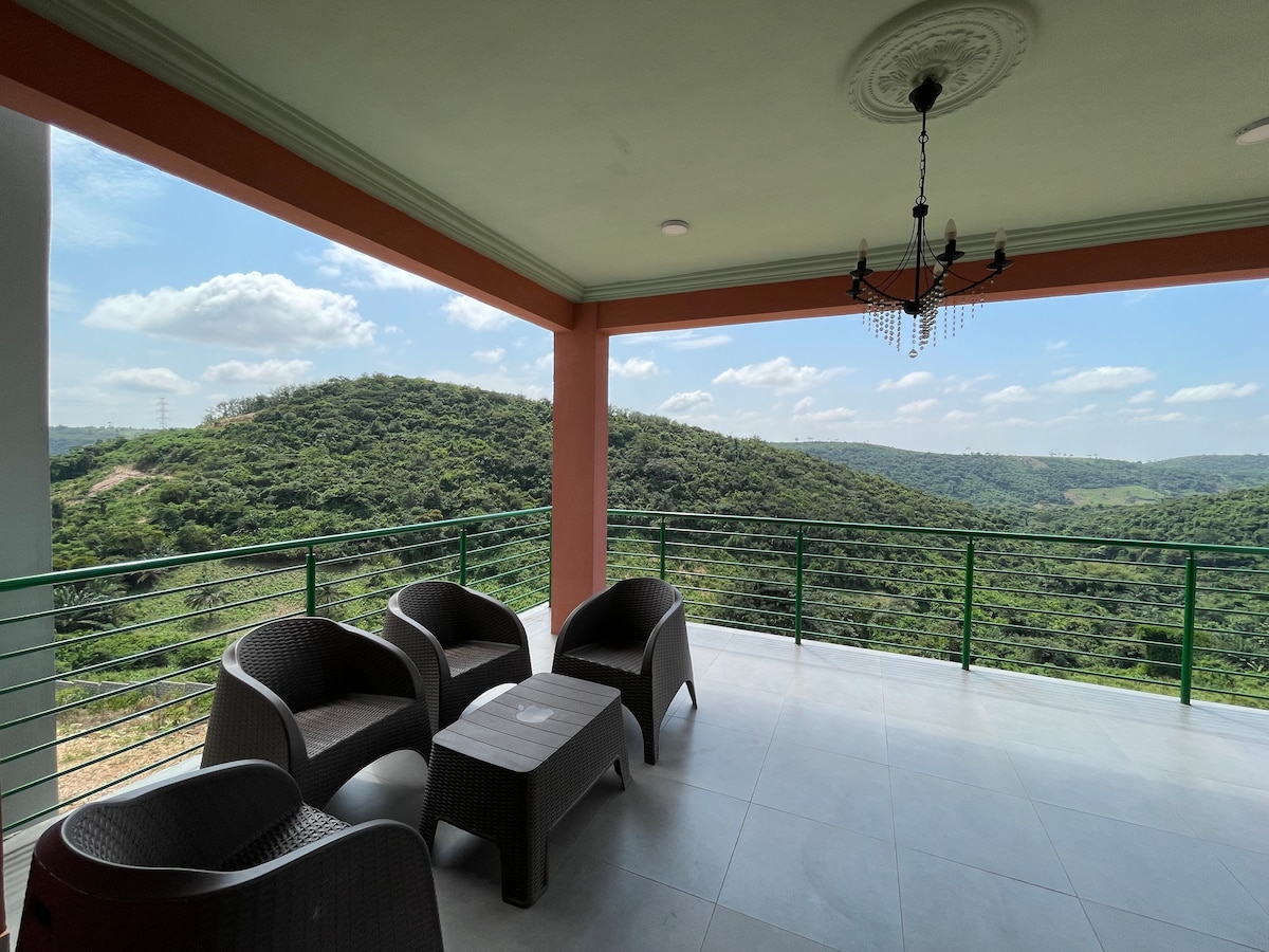 Lets make memories with this unique and family-friendly place. The property boasts of ample space open floor Cathedral HIGH ceiling Beam modern ranch design with a rooftop patio. The property is secured with High electric fence with automatic gate opener. Each bedroom has its own private full bathroom and a guest washroom. All tared roads from Airport to the villa (35 minutes drive) in the Botanical Gardens of Aburi, very close to the National Fire Service.