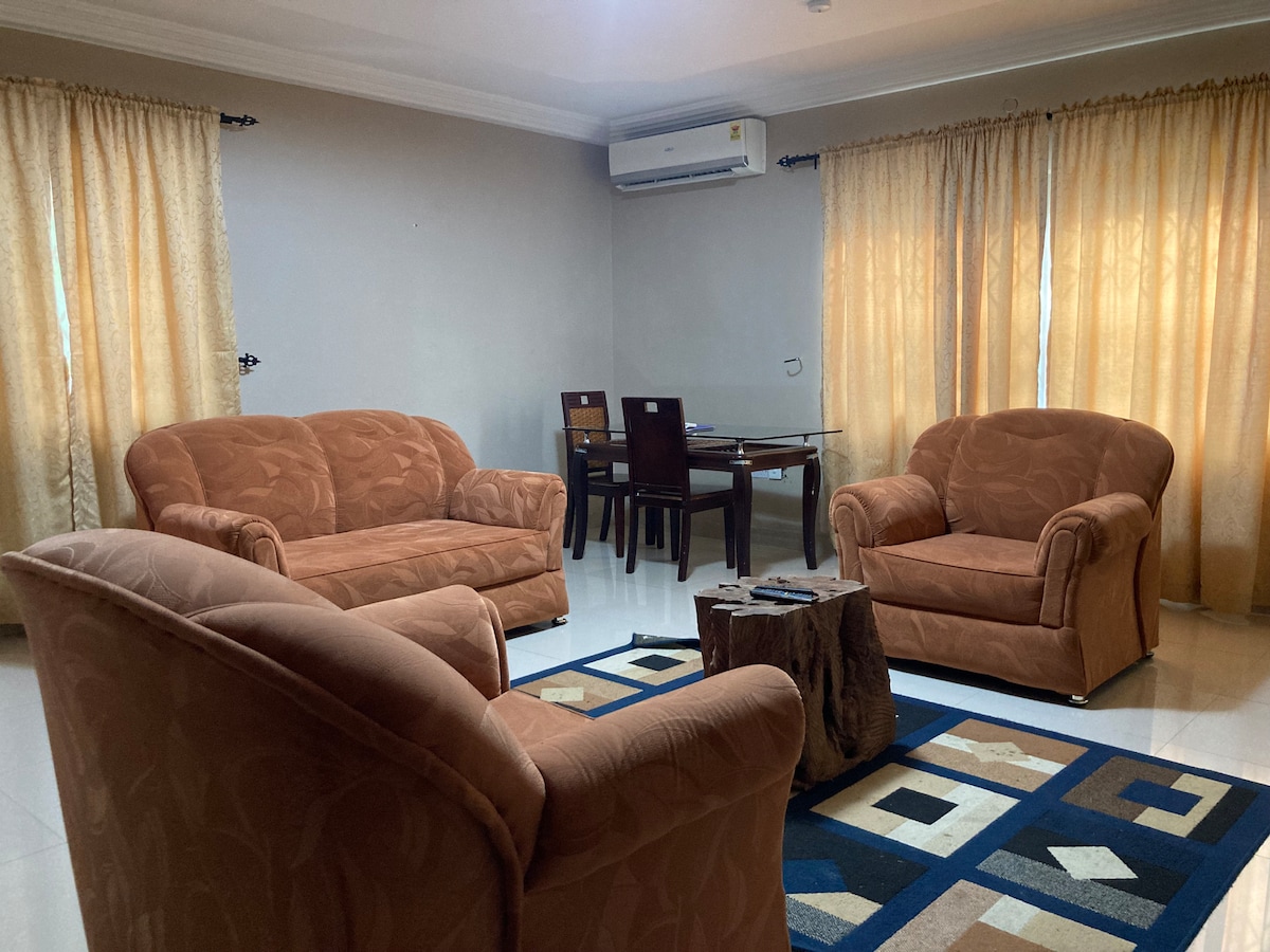 Inside our home, you will be treated to all the luxuries; ● ensuite bedrooms ●spacious open living & dining ●washing machine ●fully equipped kitchen ●all bedrooms and living rooms fully air-conditioned!! ●TV in every room ● Free WiFi ● A secured electric fence ● 24-hour security ● standby generator to avoid any surprises!! ●A car and a driver await you (upon request) to help you explore every part of Ghana ● An award winning chef to take in your orders be it continental or local dishes!!
