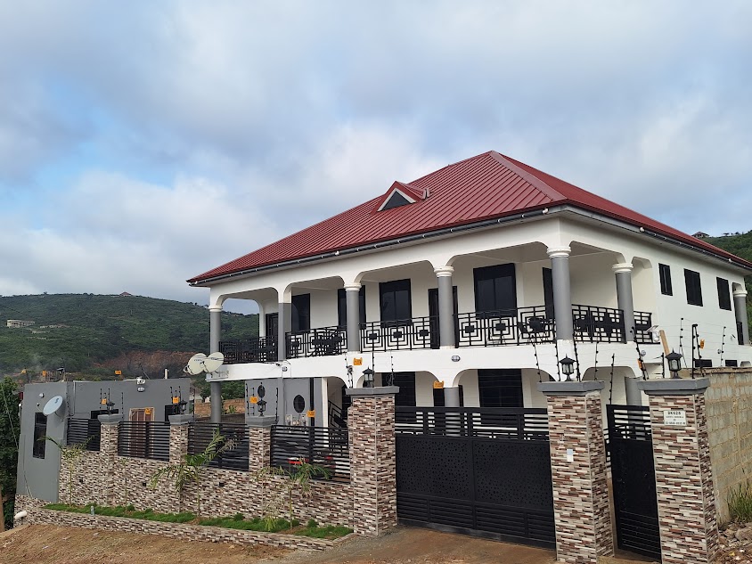 Lets make memories with this unique and family-friendly place. The property boasts of ample space open floor Cathedral HIGH ceiling Beam modern ranch design with a rooftop patio. The property is secured with High electric fence with automatic gate opener. Each bedroom has its own private full bathroom and a guest washroom. All tared roads from Airport to the villa (35 minutes drive) in the Botanical Gardens of Aburi, very close to the National Fire Service.