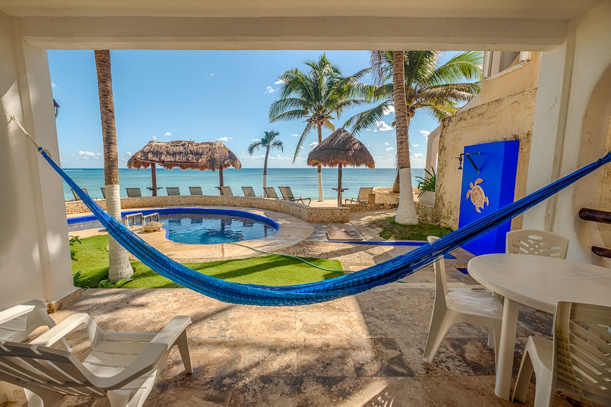 THIS PROPERTY IS SITUATED DIRECTLY ON HALF MOON BAY BEACH, while Playa Akumal, another beautiful beach, is just a 19-minute walk away. Escape to a beachfront vacation experience in this stunning 1BR condo, which feels like a small boutique hotel. Savor the incredible views, soak in the tropical ambiance, and relax on the sun-drenched beach, surrounded by spectacular beauty. Our service-oriented staff will ensure that your vacation is memorable, going above and beyond to cater to your needs.