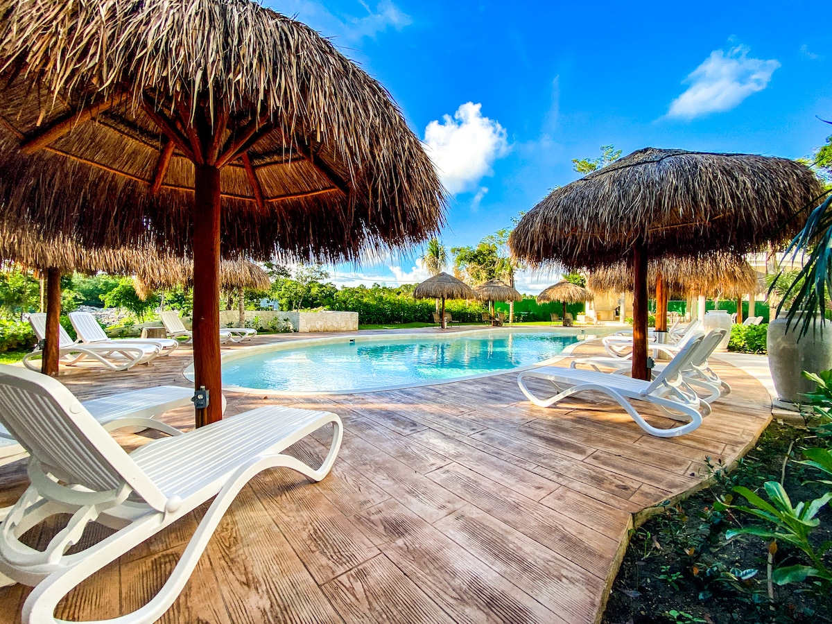 Exclusive Services for Your Comfort! 🚗 Golf cart rental ✈️ Airport transportation 📅 Check availability 🌴 Escape to Paradise in Bahía Príncipe, Riviera Maya Stay in a luxury apartment for up to 6 guests, located in a private residential complex with 24/7 security. Surrounded by tropical gardens, our space offers the perfect balance of modern comfort and nature. 🗺️ Plan your days with adventure, Mayan culture, and total relaxation.