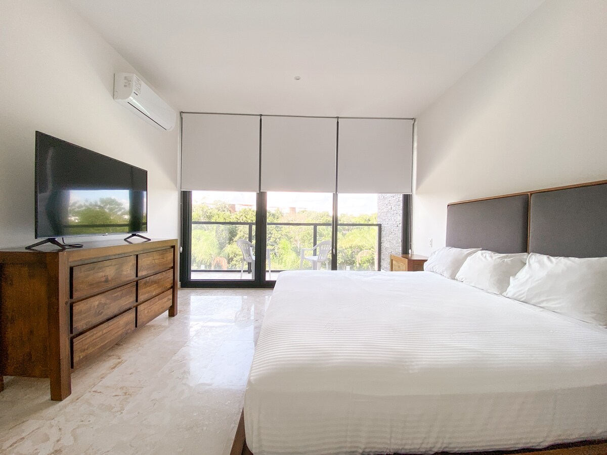 Exclusive Services for Your Comfort! 🚗 Golf cart rental ✈️ Airport transportation 📅 Check availability 🌴 Escape to Paradise in Bahía Príncipe, Riviera Maya Stay in a luxury apartment for up to 6 guests, located in a private residential complex with 24/7 security. Surrounded by tropical gardens, our space offers the perfect balance of modern comfort and nature. 🗺️ Plan your days with adventure, Mayan culture, and total relaxation.