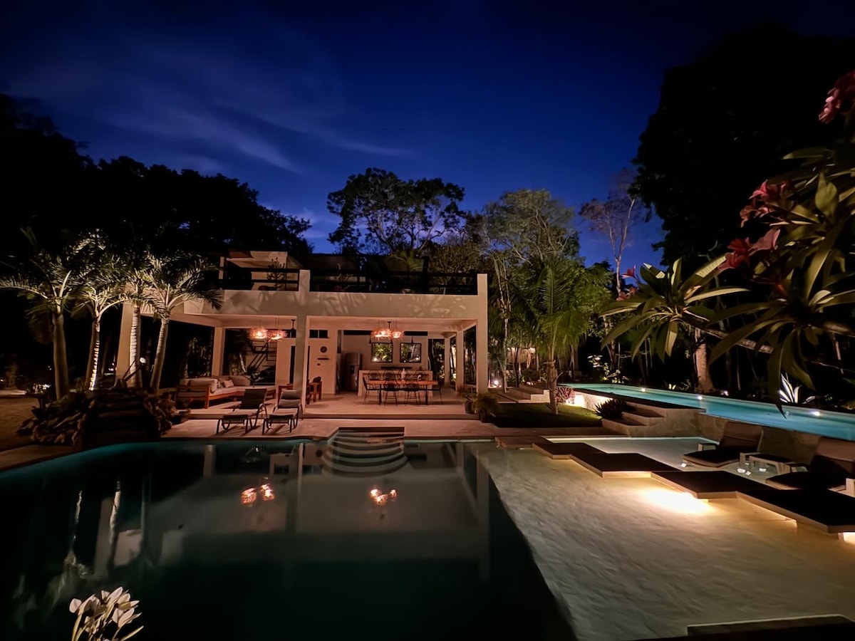 Looking for a private resort style stay? THIS IS IT! Our amazing villa includes a King size bed, fully equipped kitchen, two person spa shower overlooking a private plunge pool with spa jets and private patio. Main pool is super-sized resort style. The 2-level entertainment pavilion includes full kitchen, sun deck, lounge area and double outdoor shower. The property is a nature explorer's paradise complete with walking trails, and Aluxe pyramid. We are regularly visited by a troop of monkeys.