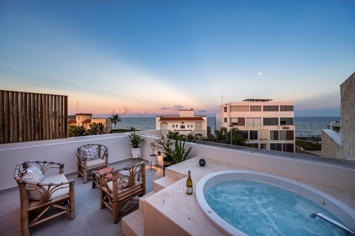 海滨顶层公寓!屋顶按摩浴缸和海景!