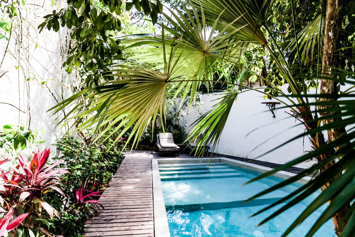 This outstanding Apartment is part of the Altar-Building. The delightful Interior Design with many old mexican antique pieces, the quality of the textiles, the lush gardening, the well equipped kitchen and the many other details making this space so special. Located in the trendy area La Veleta in Tulum, just 8 min drive to the beach and equip with 230 mb fiber optic internet connection, makes it the perfect place to stay in Tulum, also you can work from here or just relax.