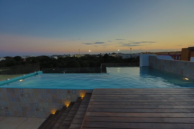 在图卢姆这间迷人的公寓的私人游泳池中畅游