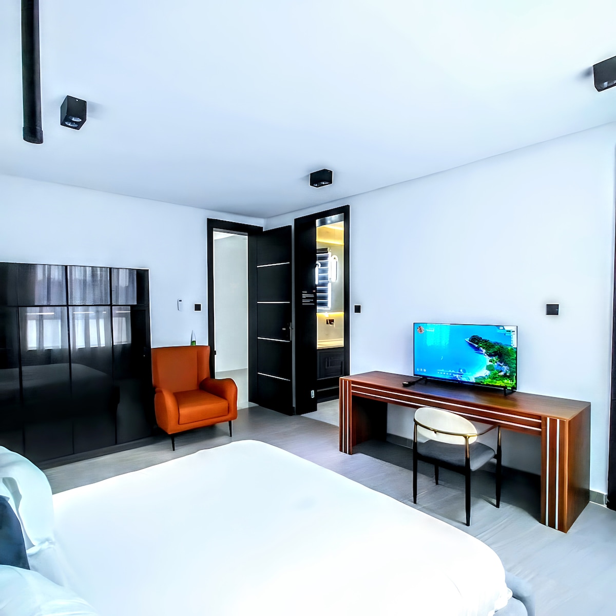 501 Aparthotel is nestled in a serene environment with a beautiful mountain view. Each apartment comes with a color theme that suits the mood/preference of guests. Each apartment also comes with a private mini garden/balcony and a communal gazebo/outdoor lounge. 501 Aparthotel is in a very quiet neighborhood with each apartment designed to bring comfort to guests. If you keep your windows opened, you wake up to the songs of birds to usher you to the dawn of a beautiful morning .