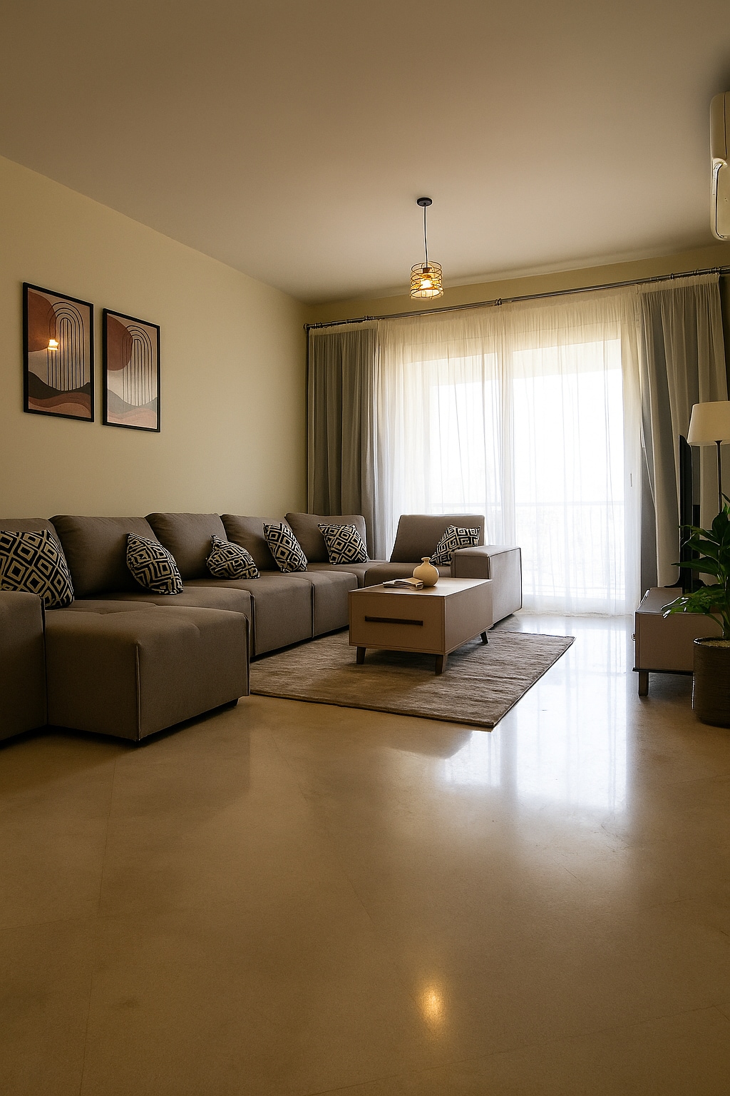 Welcome to our Deluxe 2-bedroom in Golden Gates Compound! Just 5 minutes from Maadi, 10 minutes from New Cairo and Nasr City, and 15 minutes from Cairo Airport and Heliopolis. Enjoy a fully equipped kitchen, stylish modern-boho decor, 24/7 security, and on-site amenities like coffee shops, restaurants, Carrefour, and a hospital. Relax with a 65-inch smart TV and high-speed Wi-Fi. Your Cairo adventure starts here—we can’t wait to host you!