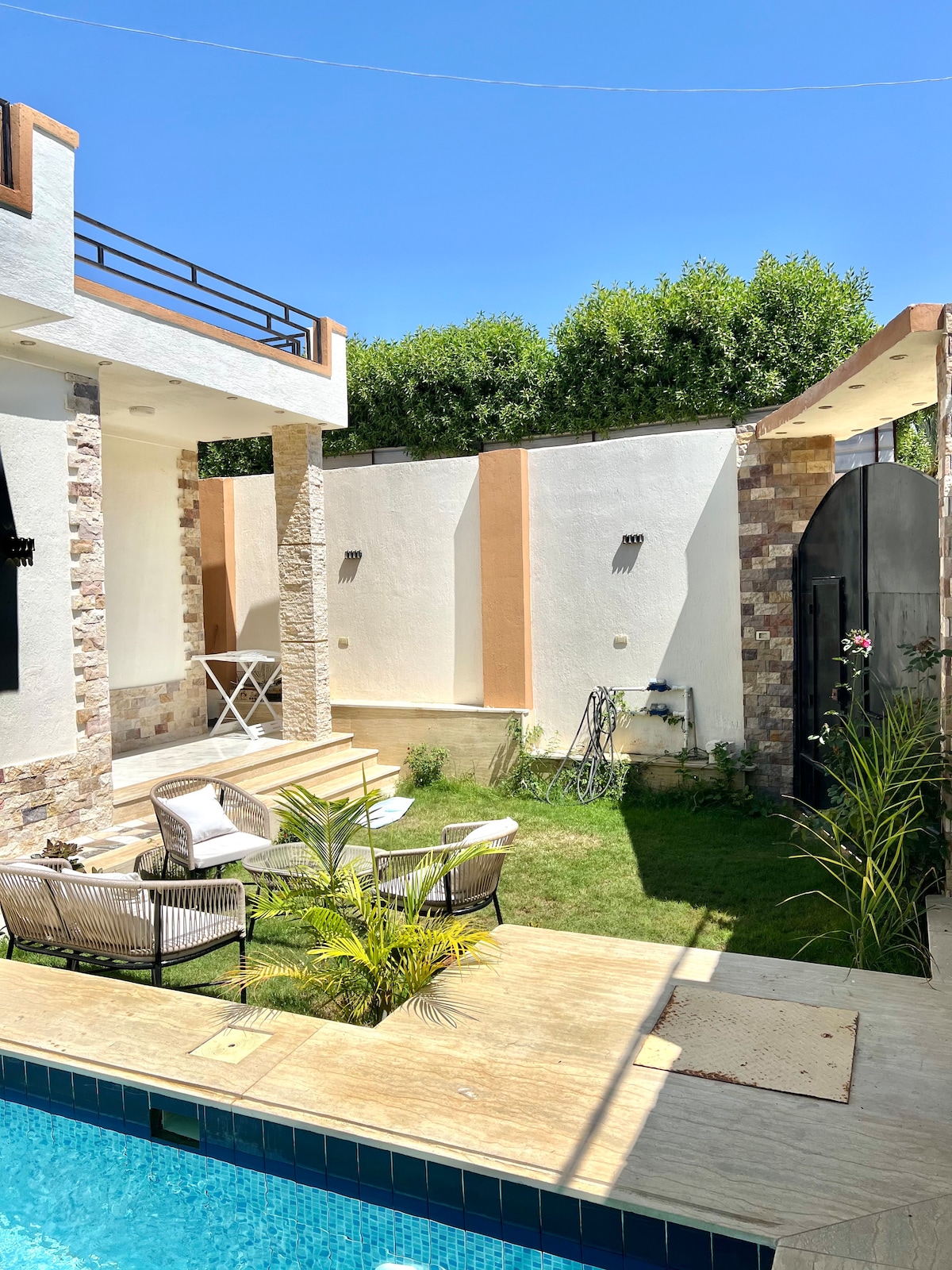 Enjoy a peaceful holiday with your family or friends at our special Villa Favorita. We have a swimming pool with a separate changing room as well as a very comfortable and cozy interior. Four bedrooms with three bathrooms and of course Wifi and smart TV. Location is ideal in the heart of King Mariout with many local shops nearby (2-3 mins drive) as well as Carrefour El Orouba (15 mins drive) Our family has been living and we've created many beautiful memories. Time to make your own memories :)