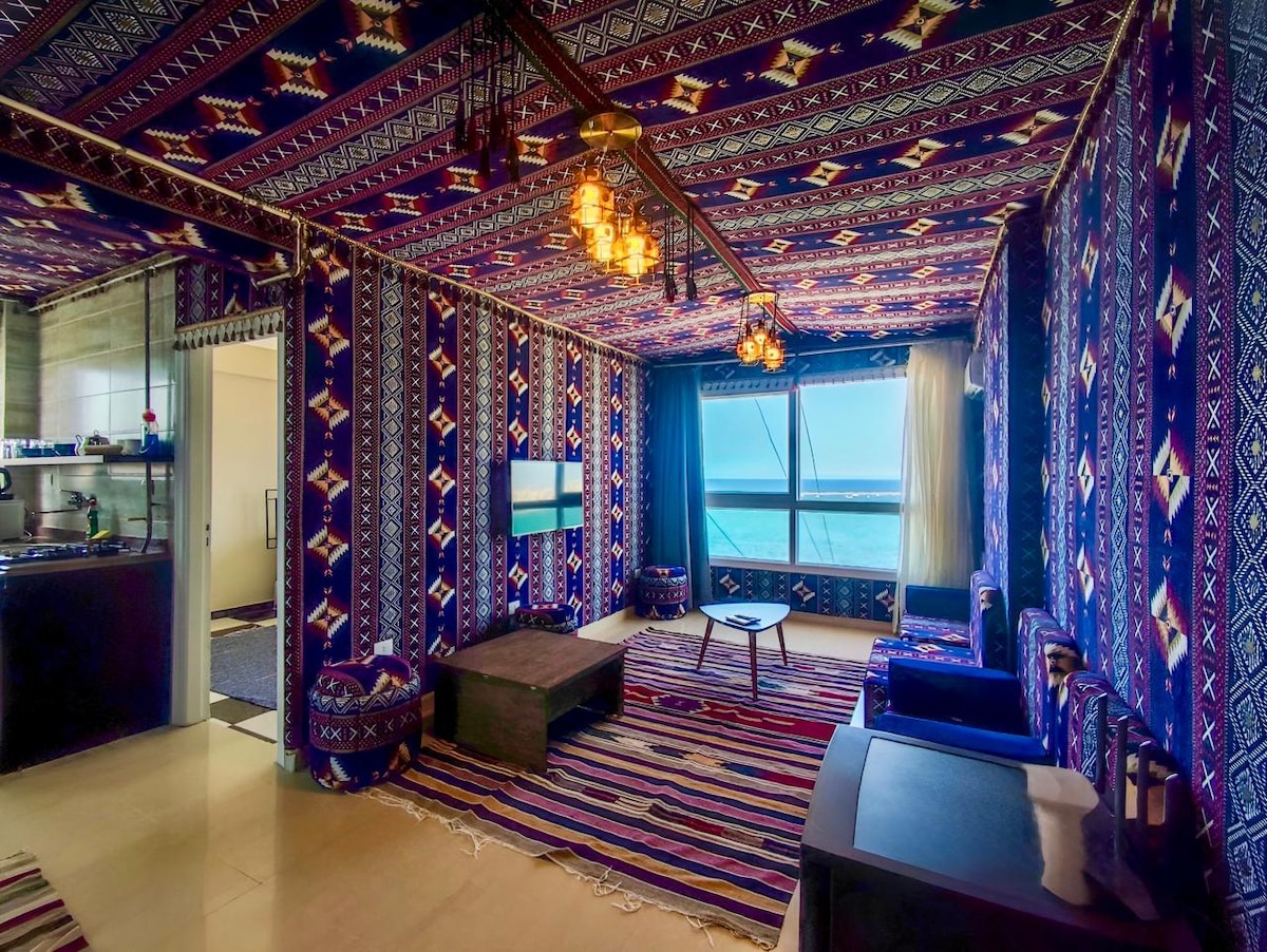Wake up to the sight and cool breeze of the Mediterranean. This unique luxurious coastal apartment with it's boho chic laid-back style, is all about comfort. Enjoy the majestic open view of the sea &the Montaza royal gardens. Our unique spacious place has all the amenities you are looking for, restaurants and cafes are within a walking distance &affordable beach access. We are offering you our private place to enjoy during the time we are forced to leave it, hoping you like it as much as we do.