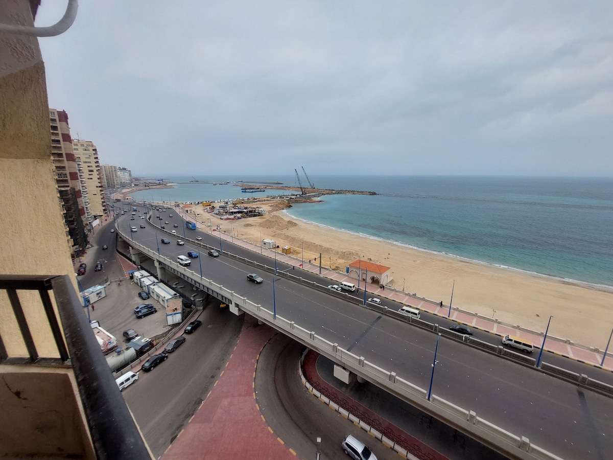 Your Luxurious 14th-Floor Mediterranean 🏖️!Getaway in Alexandria Imagine waking up to panoramic sea views from every corner of your apartment – even !from your bed Designed to maximize your sea experience, this spacious apartment is perfect for .families A room with three 120 cm beds.The other room has a 120 cm bed and a 170 cm beds "Dining, reception, living areas offer breathtaking sea views (West, North, East), perfect for enjoying cool breezes, ideal for soaking in warm sun."