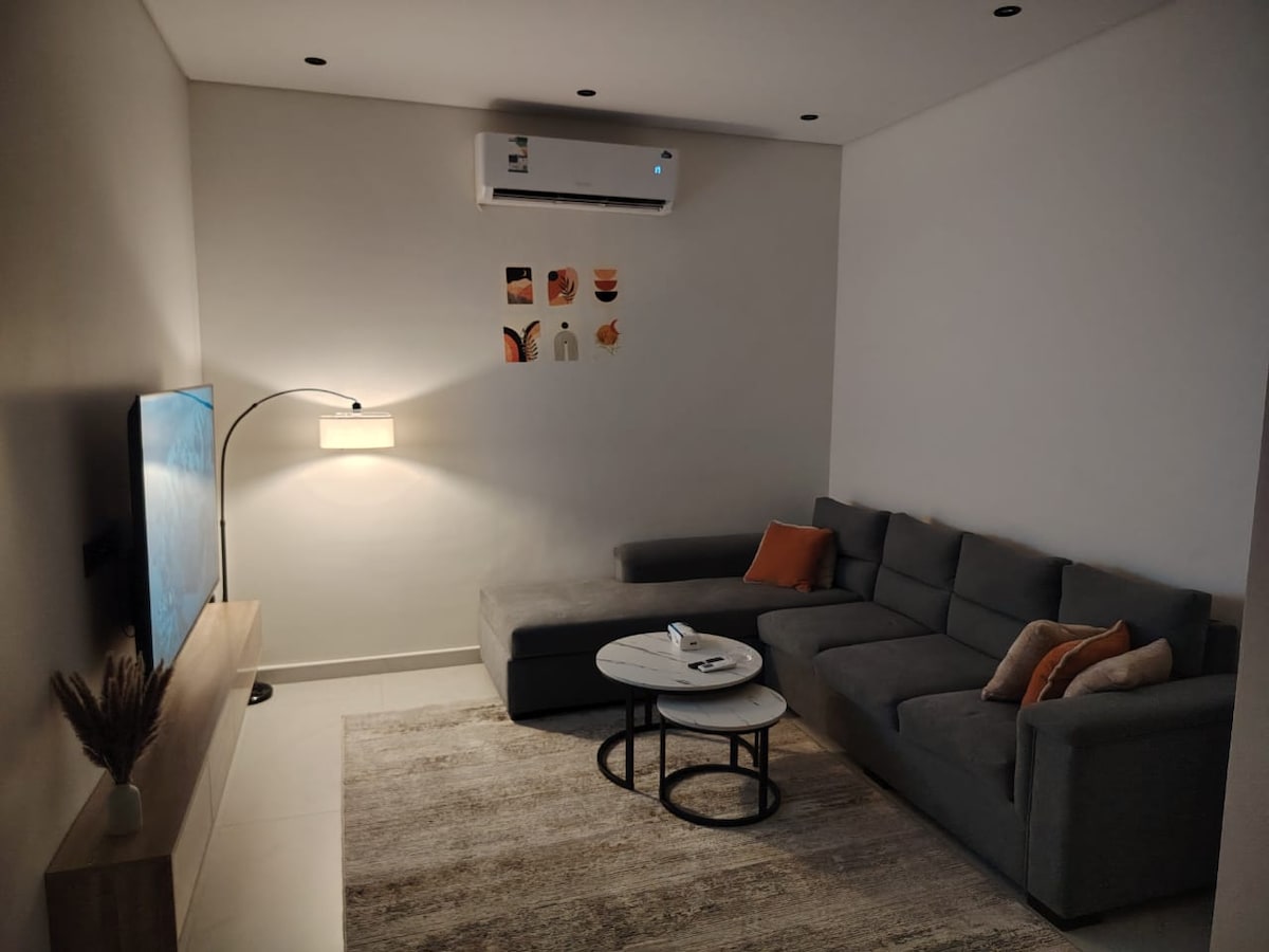 شقة واسعة مكوّنة من غرفتين وصالة وجلسة خارجية تتميز بتصميم مريح وطابع فندقي، تقع في واحد من أفضل أحياء الخبر وأكثرها حيوية. مزودة بمطبخ متكامل مع غسالة ملابس. تلفاز ضخم 75 بوصة في الصالة لمشاهدة أفلامك ومبارياتك بأعلى جودة. غرفة نوم رئيسية تحتوي على تلفاز منفصل يمكن نقله بسهولة إلى الجلسة الخارجية للاستمتاع بالمشاهدة في الهواء الطلق. جلسة خارجية جميلة ومجهزة بأجواء مريحة، مثالية للصباحات الهادئة أو السهرات الهادئة مع العائلة والأصدقاء. • غرفتا نوم هادئتان بأسرّة مريحة تضمن لك نوماً هنيئاً.