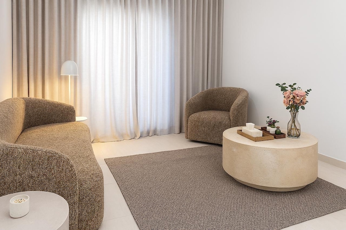M.K1 Residence - Apt Near the Bridge 3 Bedrooms Fully Furnished 2 Bathrooms 1 Toilet 1 Living Room With A " 75" LG UHD Smart TV Wi-Fi "Fast Fiber Optic Internet" 5G Fully equipped kitchen Dining table Smart Entry Balcony with outdoor seating شقة بالقرب من الجسر 3 غرفة نوم 2 دورات مياه 1 مرحاض LG UHD Smart TV "غرفة معيشة مع شاشة "75 إنترنت (ألياف ضوئية) سريع مطبخ متكامل طاولة طعام دخول ذكي بلكونة مع جلسة خارجية