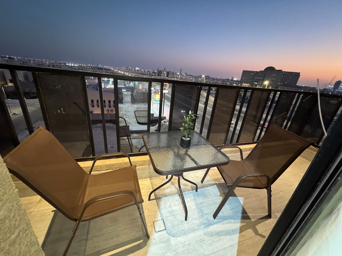 أهلاً وسهلاً المكان عبارة عن شقة تحتوي على غرفة (سرير كنق)+ حمامين+ صالة داخلية + مطبخ مفتوح على صالة الطعام. المكان مزوّد بالخدمات التالية : دخول ذاتي / واي فاي 5G / مناشف نظيفة / مكواة ملابس/ شاشة تلفزيون ٦٥ بوصة / مواقف سيارات خاصة مجانية في القبو / مصعد/ وجود عامل للمساعدة في حال وجود اي مشكلة. أكثر ما يميّز المكان أنه يقع في قلب الخبر حيث يبعُد ٦ د مشياً عن كورنيش الخبر ، تحديدا على تقاطع الشارعين الاكثر شعبية (شارع الملك سلمان و شارع الامير تركي) المليء بالمطاعم والكوفيات والمحلات