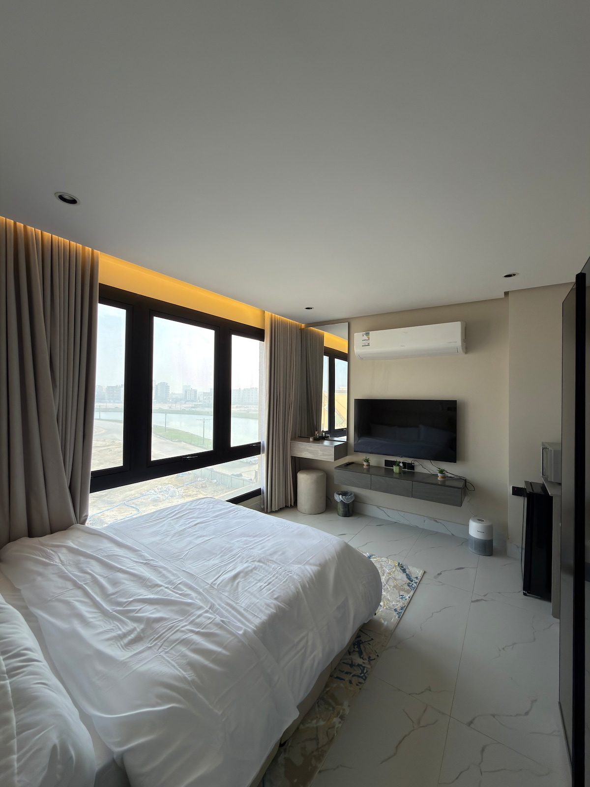استمتع بإقامة استثنائية في هذه الشقة الراقية ذات التصميم العصري والإطلالة الخلابة على البحيرة مباشرة، حيث تندمج الراحة مع الفخامة في كل زاوية. 🛏️ تتكوّن الشقة من: • غرفة نوم أنيقة بسرير كبير ومريح • صالة فسيحة بأثاث فخم وتصميم مميز • دورتين مياه بتشطيبات فاخرة ✨ مزايا إضافية: • إنترنت Wi-Fi سريع ومجاني • موقف سيارات خاص ومجاني • إضاءة خافتة وهادئة تضيف لمسة من الدفء والراحة • نوافذ متعددة بانورامية بإطلالة ساحرة على البحيرة