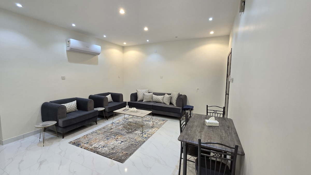 Forget your worries in this spacious and serene space. Enjoy the 5-star design & furniture, as well as mountains views, calm, relax, & rural atmosphere. Apartment is located among the best sights seeing favored by tourists coming to ALBaha region.