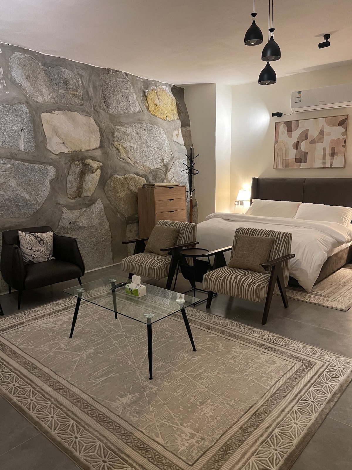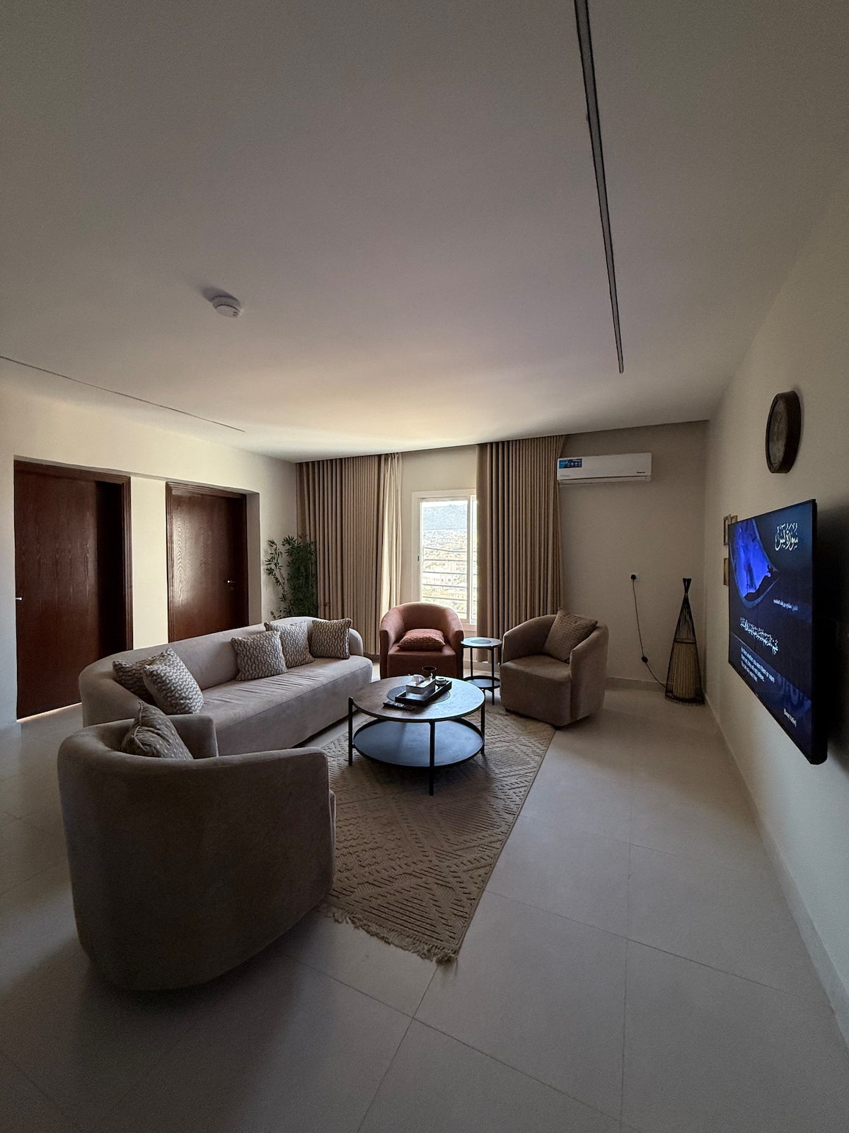 Forget your worries in this spacious and serene space. Enjoy the 5-star design & furniture, as well as mountains views, calm, relax, & rural atmosphere. Apartment is located among the best sights seeing favored by tourists coming to ALBaha region.