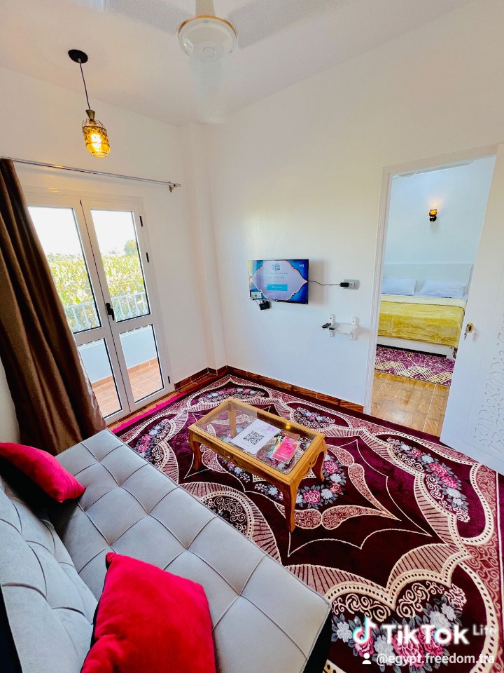 A one-bedroom unit,first floor, 1 min from Colossi of Memnon & Medinet Habu, this cozy first-floor space features a king bedroom, living room, kitchen, bathroom, and balcony with scenic views. Close to Deir el-Medina & Valley of the Queens (3 mins). Luxor Airport: 20 mins. On Memnon's main street near shops, restaurants, and cafés. Easy access to local transport, Indrive, and hot air balloon site nearby—perfect for a comfortable stay!