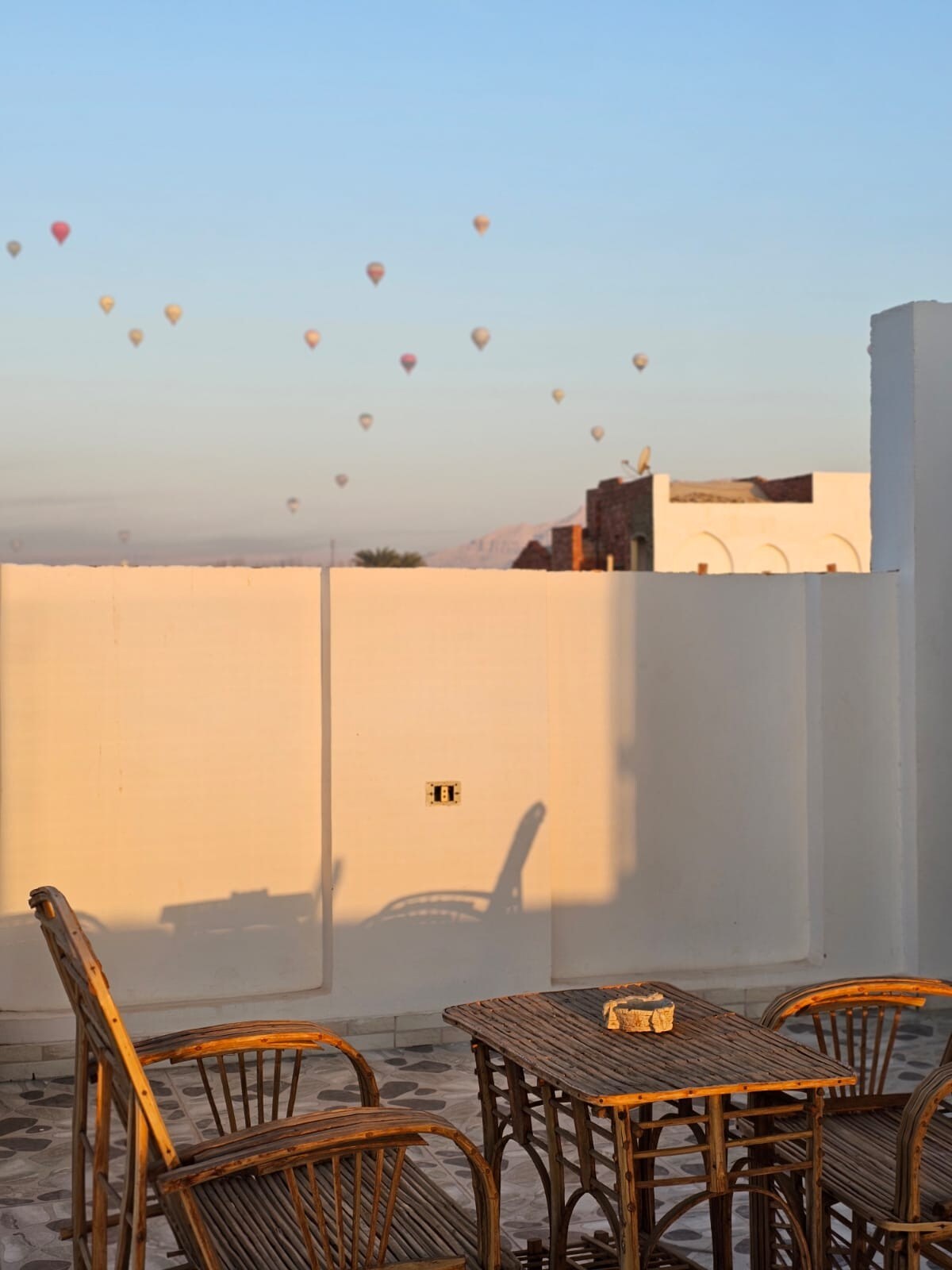 Beit El Hana is located near all the important landmarks such as the Valley of the Queens, the Valley of the Kings, and the Temple of Medinet Habu. Beit El Hana offers a beautiful view of the sunrise and sunset, and you can also enjoy hot air balloon rides in the morning. We also provide a rooftop and ideal vantage point for viewing the 2027 solar eclipse. The rooftop here will be perfect for viewing the eclipse, and there is a space here that offers a breathtaking view of the Valley of the Quee