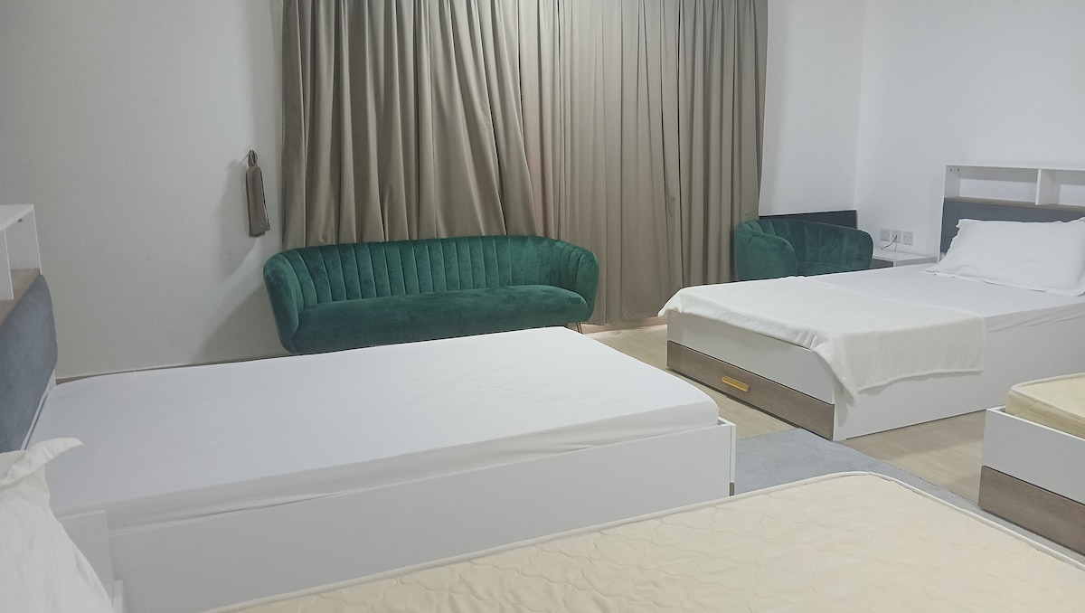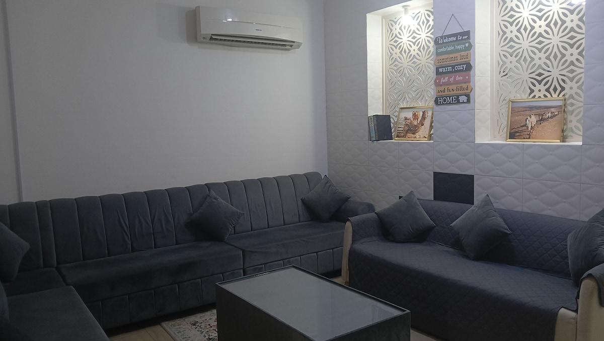 A homey apartment equipped well , major shopping malls ( city centre and Safeer mall) a 5 min driving from the apartment . Kitchen equipped with gas stove ,Oven , microwave and electric kettle. The Apartment has internet access and 55 “ 4k Smart TV you can watch netflix on it . Walking distance nearby restaurants.