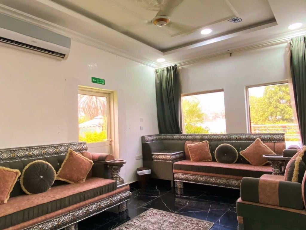 هوانا شاليه هوه المكان الفريد من نوعه في صحار وبالقرب من دولة الامارات بساعة واحده فقط كذالك قربه من العاصمة مسقط بساعتين في شاليه هوانا استمتع بأصوات الطبيعة عندما تقيم في هذا المسكن الفريد من نوعه. الهدوء الجميل والاسترخاء الراحه النفسية الإطلالة الخلابه على حوض السباحة العاب الاطفال والمسطحات الخضراء المعشبة بالعشب الطبيعي وصوت الشلال الجداري مع النوافير كذالك لا ننسى أنواع الورود المتنوعه الجميله الموجوده في الشاليه مع زقزقة العصافير في الصباح عند شروق الشمس المكان جدا نظيف وملائم