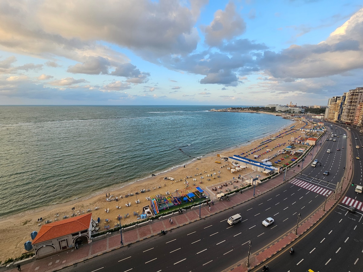 In the heart of Alexandria and in front of one of the most charming shores in the world, high in the sky on 5th floor is the apartment. From that height you can see the King's palace, the beaches and those tiny cars flowing on the road. Inside a modern and cozy flat with all necessary and unnecessary facilities, tidy and clean waiting for your arrival. Hope you experience a remarkable and unforgettable vacation ❤