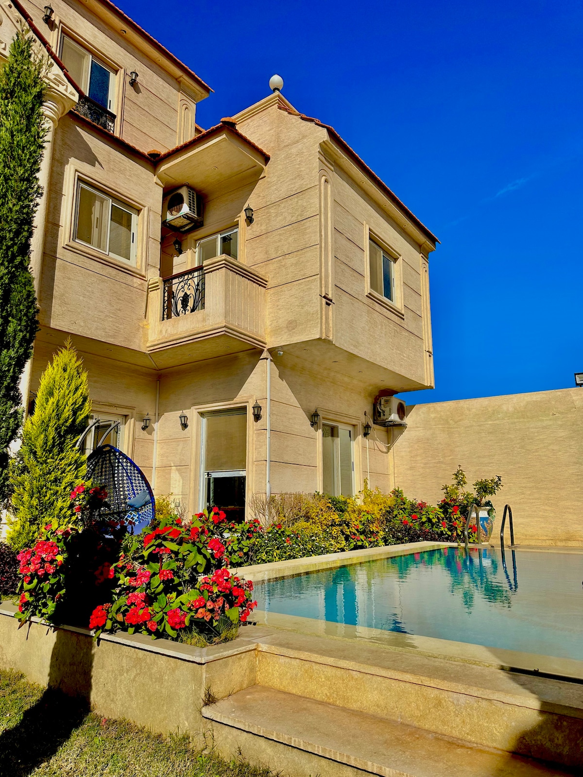 Welcome to the Nubian Villa! Discover a serene escape at this beautifully designed lakeside retreat, just 30 minutes from Alexandria and 10 minutes from the International Borg Alarab airport. Nestled on the tranquil shores of Lake Marriott, the Nubian Villa offers an unparalleled blend of peace, comfort, and natural beauty—perfect for a relaxing getaway.