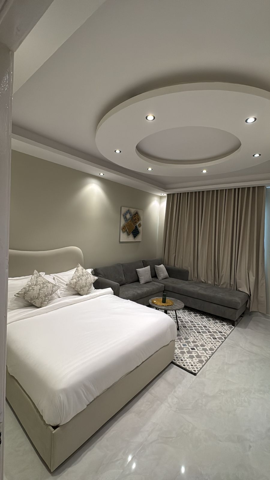 تصميم هذا السكن مستوحى من التصميم الايطالي وتم تنسيقه بعناية من اجل توفير اعلى مراحل التجانس البصري كذالك تم توفير اجود انواع المراتب لسرير النوم من اجل استرخاء عميق بالنوم كذالك تم توفير اجود انواع المكيفات البارده ❄️❄️ والاهتمام بالنظافه 🧼🫧 وتعطير المكان 🌺 خدمة تنظيف وتغيير المفارش يومي مجاني 🧹🧻🪥