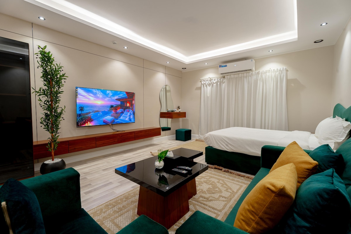 Kick back and relax at this modern studio in the heart of Olaya, Riyadh, where comfort meets convenience. Whether you're here for work or a weekend escape, you’ll love being close to top spots like Kingdom Tower, Faisaliyah Tower, King Fahd Library Metro Station, and the vibrant Tahlia Street. With cozy interiors and easy access to main roads, cafes, and shopping, everything you need is right at your doorstep. Here, it’s not just a stay, it’s your own slice of home in the city.