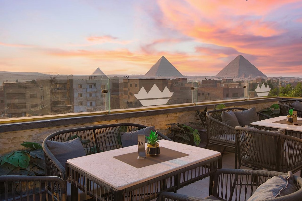 Just 3 km from the Great Pyramids and the Grand Egyptian Museum, our boutique retreat blends timeless views with personalized service. Enjoy breathtaking sunsets from the rooftop terrace overlooking the pyramids, and relax in stylish, tranquil surroundings. With warm, attentive hospitality at every turn, our hotel offers a serene escape where comfort, culture, and care come together to create a truly unforgettable stay.