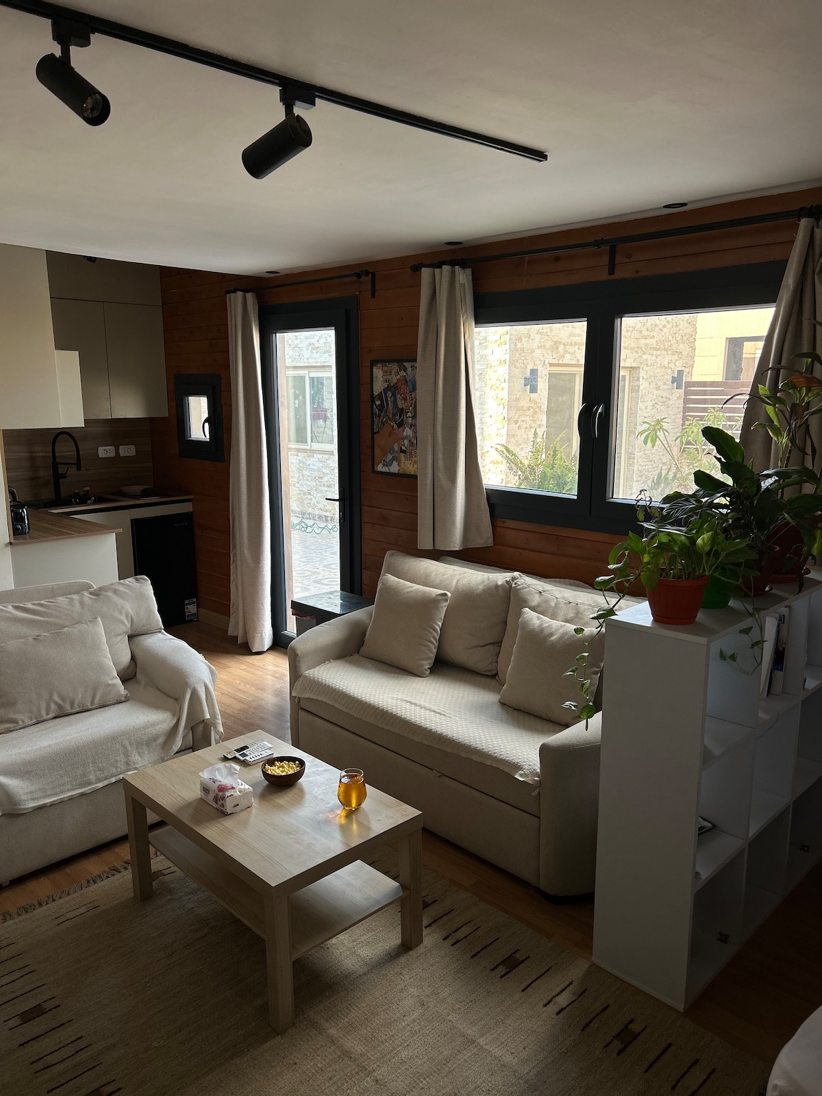 Welcome to your private modern rooftop escape! This stylish studio is located on the rooftop of a quiet building and offers a unique blend of comfort and nature. The space is filled with plants and greenery, creating a peaceful and refreshing atmosphere. Enjoy the bright, open design with modern furnishings, a cozy bed, a small seating area, and everything you need for a comfortable stay. Perfect for couples, solo travelers, or digital nomads looking for a relaxing spot in the city.