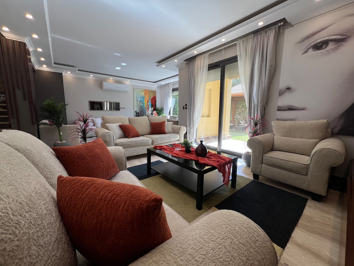 The Boho house has an amazing spacious garden. Your family will be close to everything when you stay at this centrally-located place, Chowayfat area. Five minutes from 5A by Waterway Mall, seven minutes from the medical park and all medical centers, eight minutes from Cairo Festival City mall.