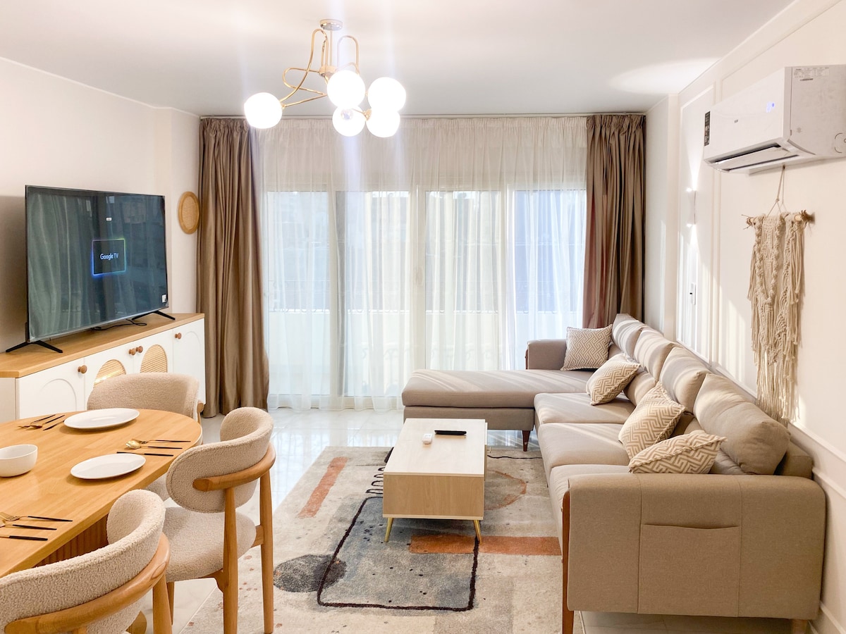 Experience the soul of Cairo from our uniquely bohemian-styled apartment, designed for comfort and character. The space features three bedrooms — including one master bedroom and five cozy single beds, ideal for families or groups. In the city center on El-Sheikh Yusuf Street, you’re just a 5-minute walk from the Nile River, Tahrir Square, and many of Cairo’s top attractions. This is a new building, issues might arise therefore we advertise this low price.