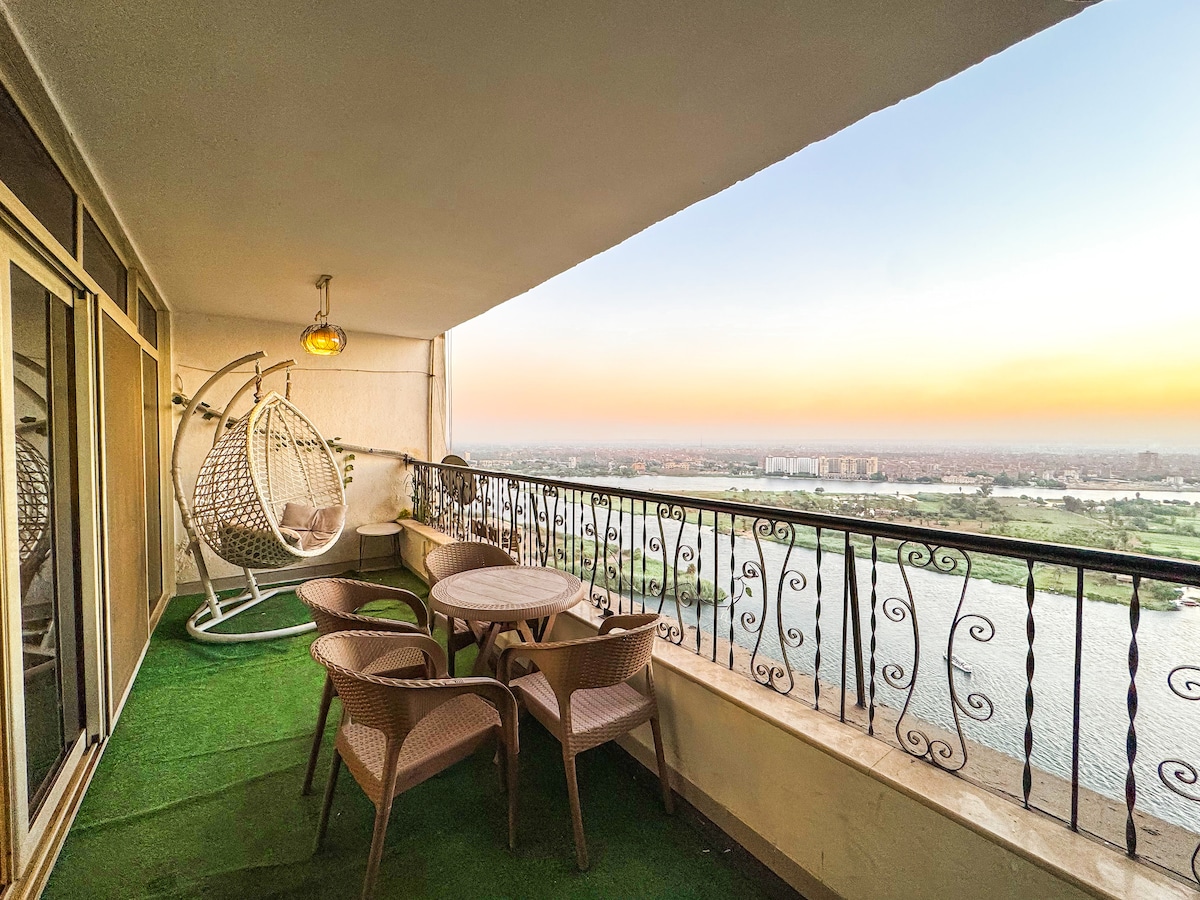 Amazing Nile view luxury apartments with enjoy the sunset view & pyramids . Enjoy a stylish experience at this centrally-located place in new towers , you can enjoy staying along with your lovely guests feeling the completely comfortable inside the classic house #10 Minutes from Downtown (Cairo Museum and Burj of Cairo #12 Minutes from AlMohandessin #20 Minutes from Pyramids