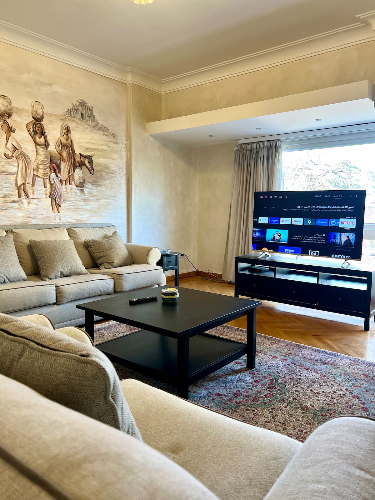 Make some memories at this unique and family-friendly place. In a very central position in the heart of cairo with the best view in the city. It consists of: . 3 bedrooms . 3 toilets with one hot-tub in the master room . air conditioner in every room (5 in total) . Open kitchen fully equipped . Spacious living room and guest room . A very spacious balcony