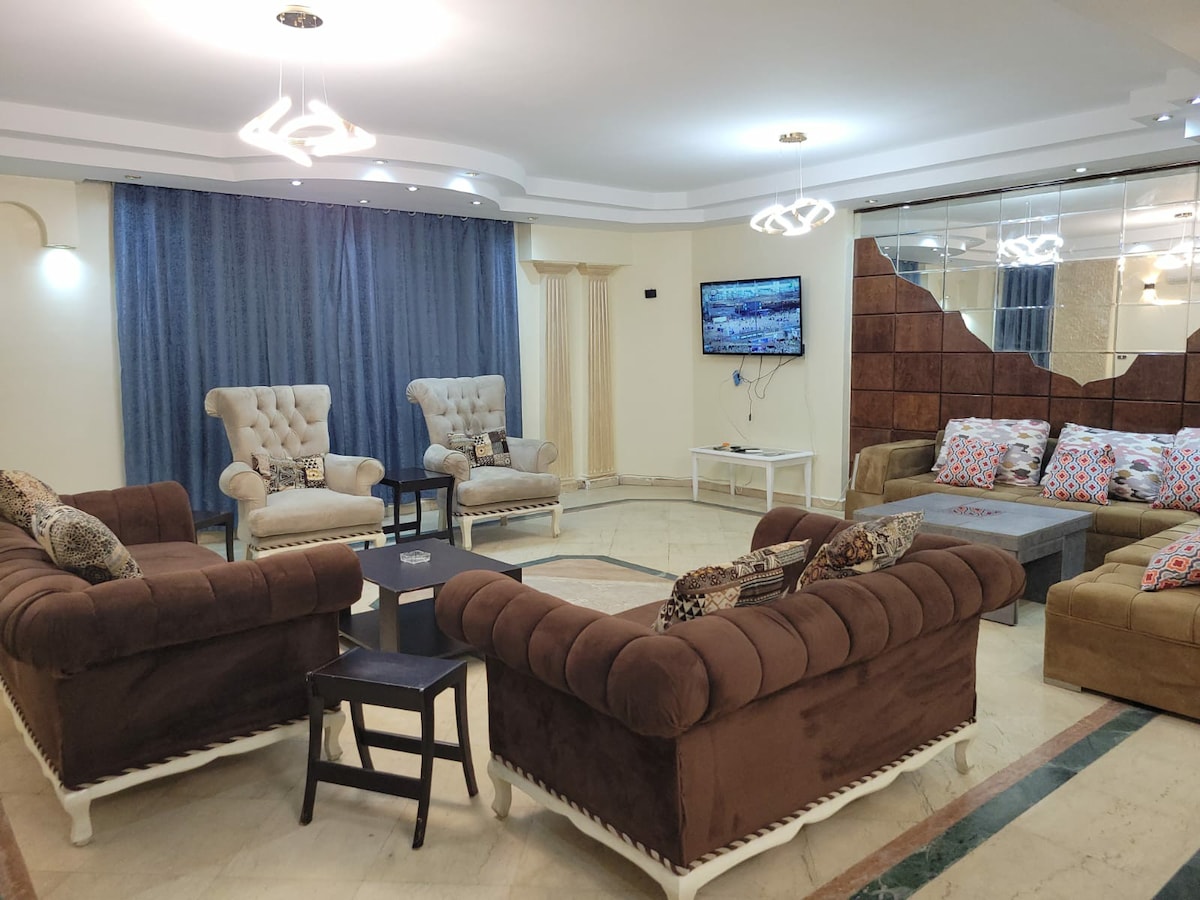 Have fun with the whole family and your lovely friends(Guests ) at this stylish place. Amazing Nile view luxury 3 Master bedrooms Which you can enjoy the sunset view & pyramids. Enjoy a stylish experience at this centrally-located place in new towers , you can enjoy along with your lovely guests feeling the completely comfortable inside the stylish house # 10 minutes from downtown ( Cairo museum and Burj of Cairo ) # 12 minutes from Al Mohandessin # 20 Minutes from pyramids