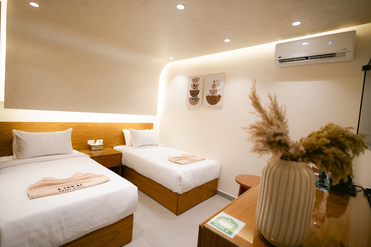 Our Sahara Room is located on the 3th floor of our property. It has a separate room from the bedroom for the fridge, wardrobe and to store things like luggage. It has one of the most spacious bathrooms on the property.